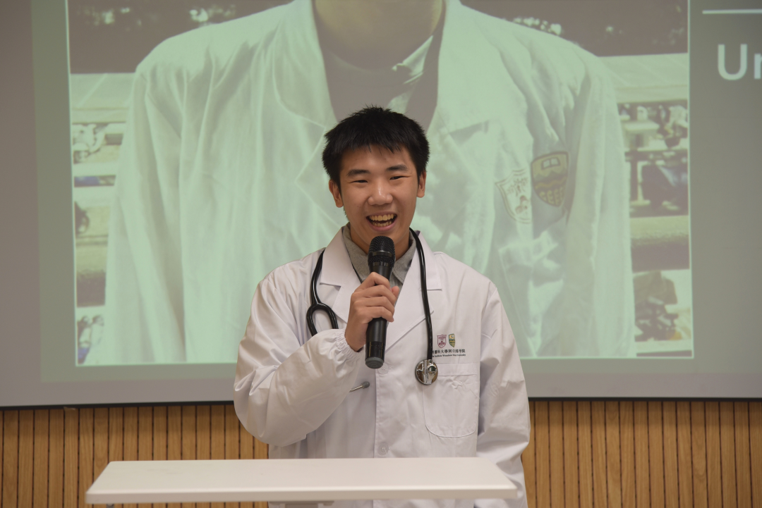 宣誓仪式结束后,57位同学一一上台,用英语讲述了自己学医的初心,彼此分享在成为医者的道路上砥砺前行的精神动力。其中,“新冠疫情”“帮助他人”“远离病痛”和“获得幸福”成为了大家杏林学医的高频理由,相似的初心也彰显着2020级本科生彼此内心中共通的使命愿景。