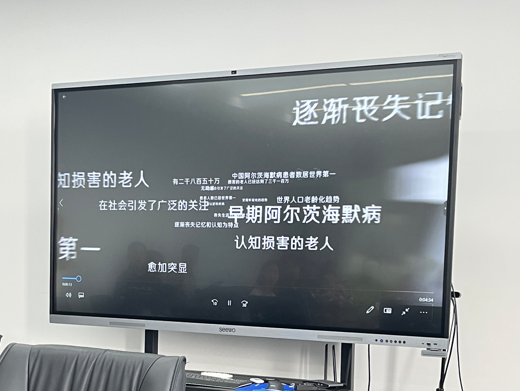 首先,实验室的负责老师播放了老年研究院的介绍片,辅以PPT为同学们讲述阿尔兹海默症的研究方向和老年研究院的情况。