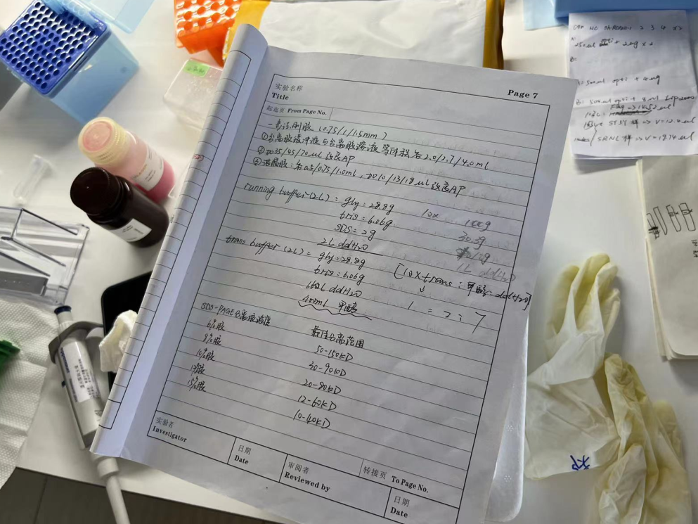 同学们近距离观看先进的实验设施,有陌生的大型仪器,也有在课本上见过的离心机、锥形瓶等,还有一些实验记录的笔记。