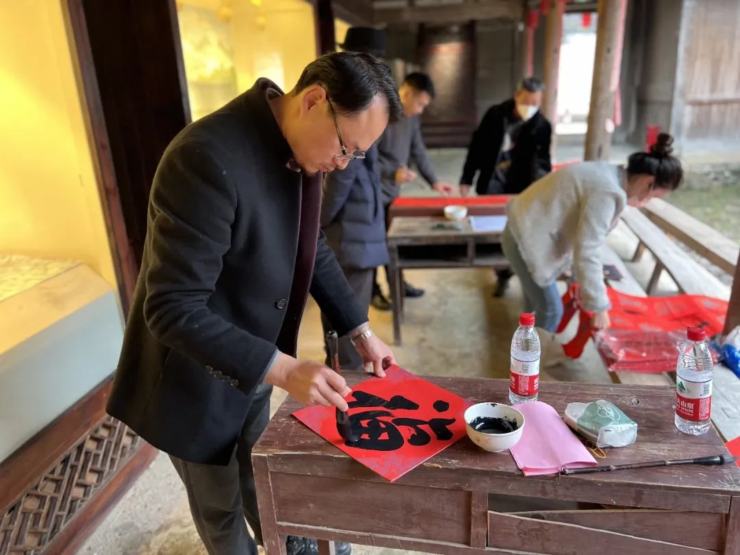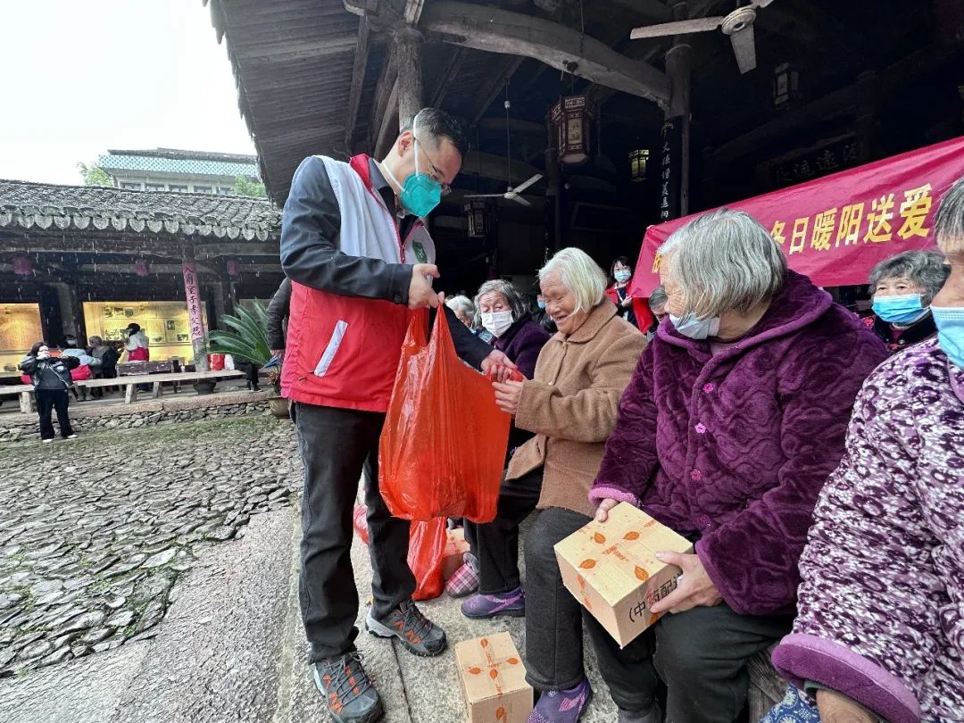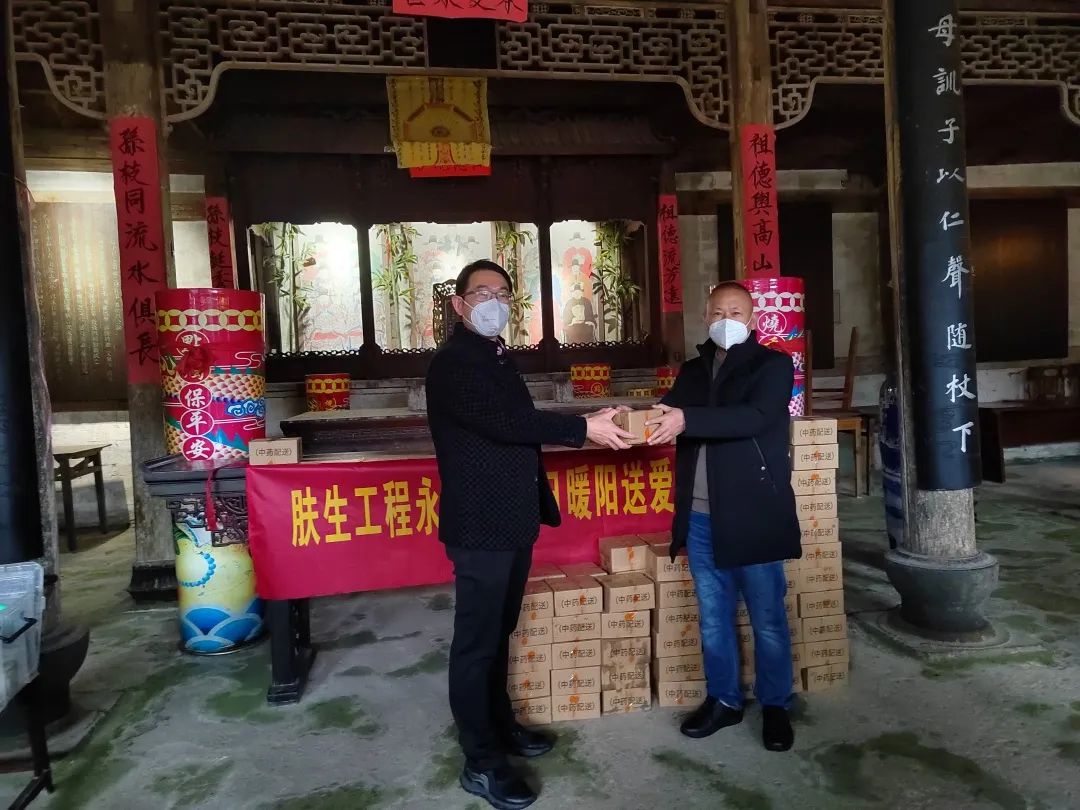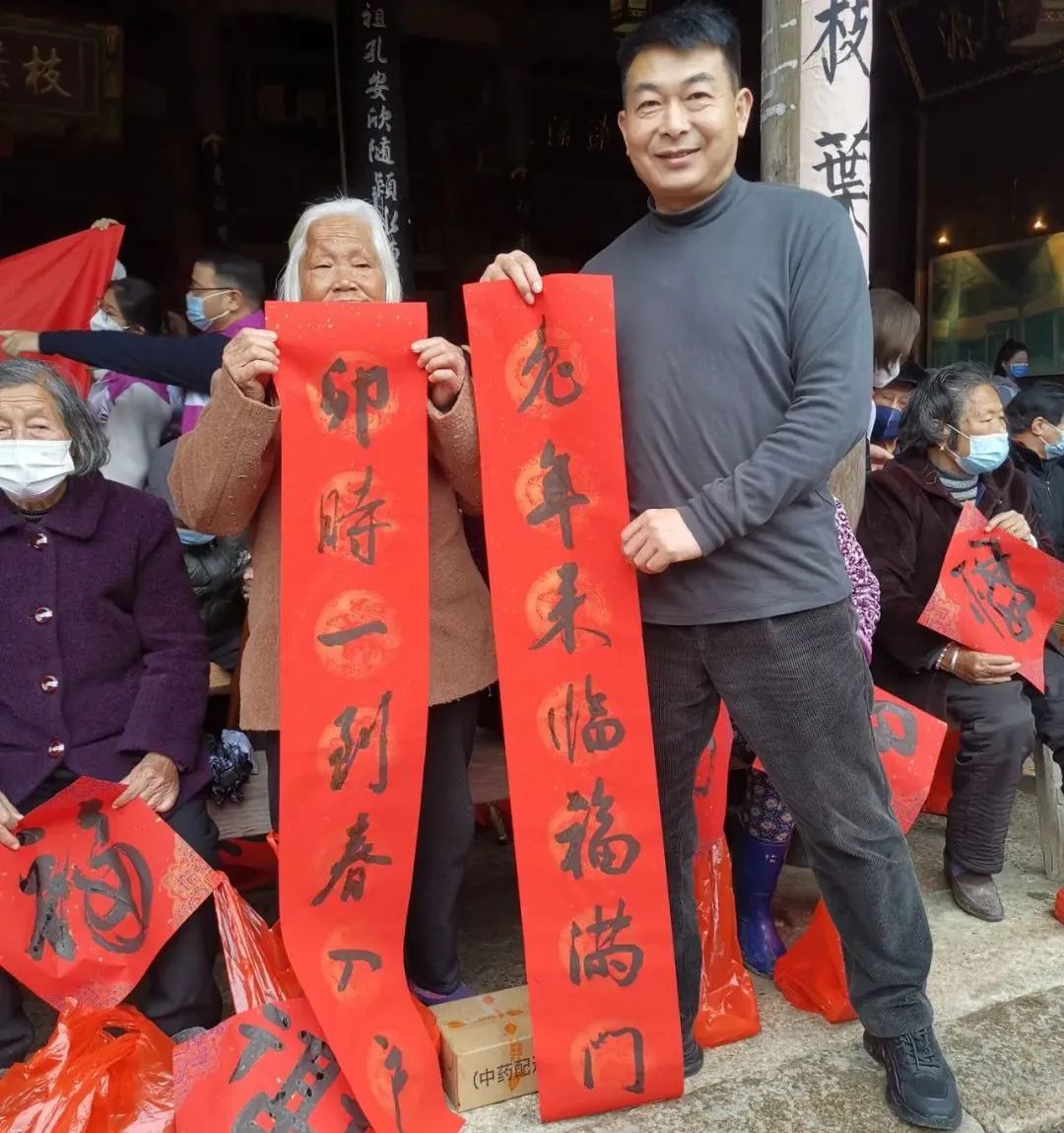 在现场,陈忠慈善工作室累计送上3万多元爱心款,为每位老人送上一刀肉,并为他们投保“温州益康保”;同时,为该村12名困难户每人送上爱心包。温医大药学院党委副书记王建波带领药学院志愿者向村民们发放爱心防疫包。温州楠溪第一楼餐饮董事长、温州市书法家协会会员金育林和温州丝绸之路文化艺术有限公司董事长吴琪雷,为村民写春联和福字,共送出100多副春联和福字。