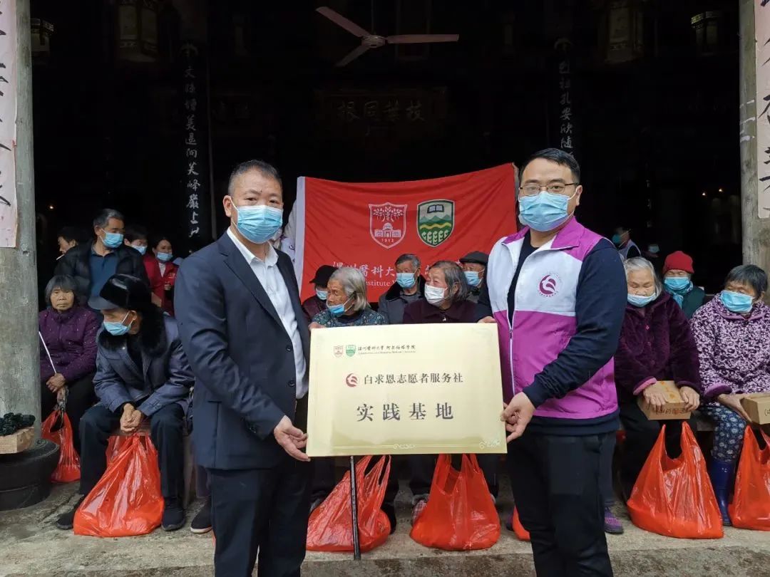 当天在义诊间隙,白求恩志愿者服务社在芙蓉村设立学生实践基地,将在当地村委会工作人员和村民的指导和协助下开展爱心实践活动,丰富学生课余志愿活动,扩大服务社社会服务面。此前,学院副院长王小尚已被聘为芙蓉村驻村公益服务队和驻村公益大使。