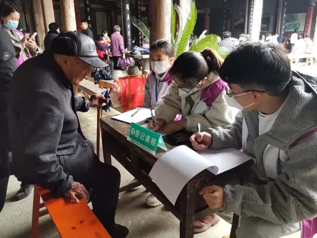 我院办公室主任施苏雪带领学院白求恩志愿服务社的学生志愿者戴怡然、熊轶城协助登记问诊,采访调研帮助村民建立健康档案数据库,助力“肤生工程”相关患者的长期健康状况追踪。