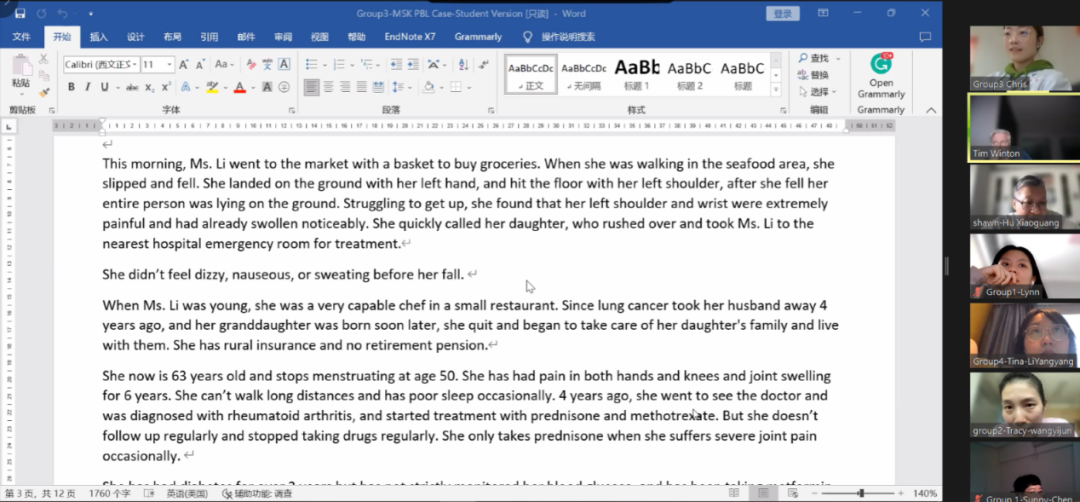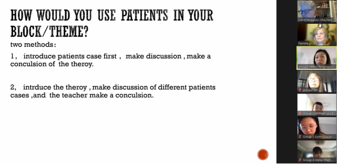 经过前后三个月的紧张学习和备课,中加联合师资培训项目第二模块顺利结束。本期师资培训以“模块化、小组化、专业化、递进式”为主要特点,每个小组紧密结合本组组员的学科背景,共同顺利完成了一个基于问题的学习(PBL)课程从前情导入、病史叙述、体格检查到相关影像学检查的案例撰写,最后的教学展示环节中,各展示小组教师担任“导师”,其他教师担任“学生”的角色,使得在场教师深度体验了拷贝漫画 学生全英文讨论课的课程全过程。