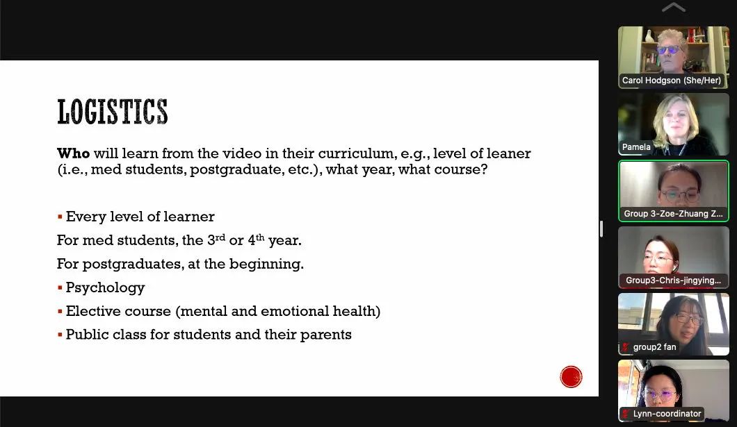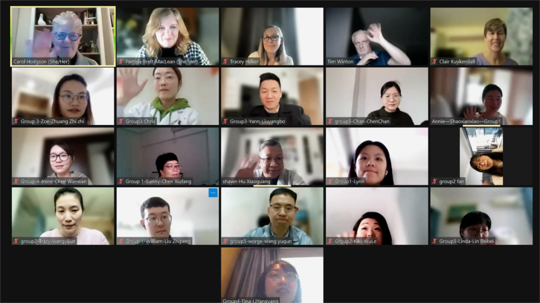在展示环节,拷贝漫画 加方执行长特雷西·希利尔(Tracey Hillier)、拷贝漫画 呼吸系统课程负责人蒂姆·温顿(Tim Winton)、拷贝漫画 加方选修课负责人帕梅拉·布拉特-麦克莱恩(Pamela Brett-Maclean)、拷贝漫画 课程协调员克莱尔·库肯大(Clair Kukendal)作为“学生”,一同参与了线上的小组讨论。