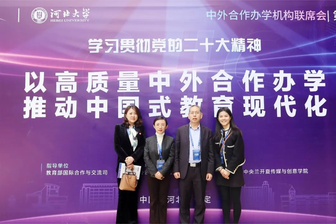 执行长阮积晨率队赴河北保定参加在河北大学-中央兰开夏传媒与创意学院举行的中外合作联席会第九次会议。本次会议以“学习贯彻党的二十大精神,以高质量中外合作办学推动中国式教育现代化”为主题,探讨中外合作办学中所共同面对的机遇和挑战,谋划教育内涵式高质量发展的创新路径。来自全国130所机构及25个项目的360余名院系负责人参加了本次会议。