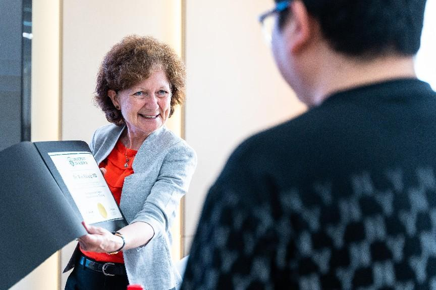 加拿大健康科学院院士布兰达·合姆嘉姆在致辞中向参加中加联合师资培训项目的各位教师们表示了感谢,感谢他们在参与项目一年间的坚持与支持。在祝贺各位教师学员顺利完成本项目的同时,也提出了期许与展望,希望各位教师能够将所学内容持续应用到医学教育事业,尤其是“健康中国2030”计划(Healthy China 2030)中,为培养更多的出色医学专业人才作出应有的贡献。