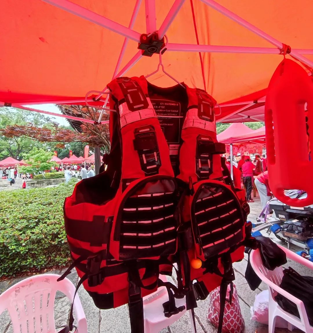 蛟龙救援队还准备了救生衣、救生艇等救援物资的展示,吸引了大批路人的围观和询问。活动过程中,志愿者们还为现场的小朋友们发放了防溺水救生球,收获了孩子与家长的一致好评。