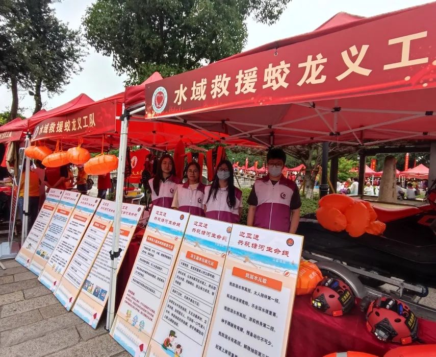 “守卫生命,守卫塘河”系列活动已然启动。经过之前的防溺水培训,白求恩志愿者服务社的志愿者已掌握许多防溺水的相关知识,此次活动便与蛟龙搜救队一起负责了防溺水宣传的摊位。