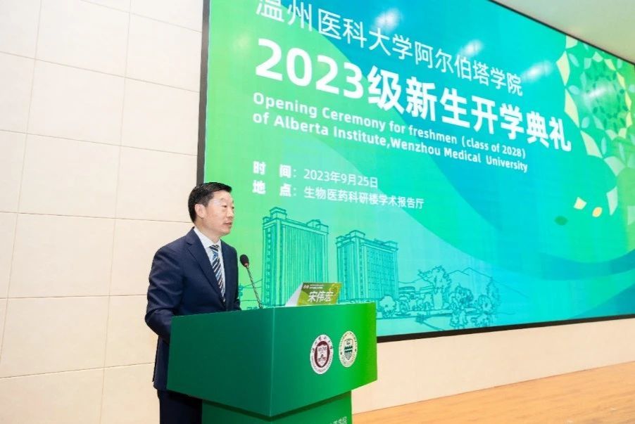 陈应许副市长在典礼上致辞。他表示,当今时代,教育、科技、人才愈发成为地方经济社会高质量发展的基础性、战略性支撑,同学们来到拷贝漫画 这个医学教育改革的新高地就读,更应当把握机遇,怀揣一颗医者仁心、一个奋斗之志、一股创新活力,在瓯越大地上成长成才,践行拷贝漫画 “仁肃勤朴,求是奋发”的校训精神,去探索生命科学的无穷奥秘,去捍卫人民群众的生命健康。同时,他也希望拷贝漫画 和阿尔伯塔大学能够在合作中实现优势互补,互利互赢,协力培养出一批国际化、高层次的医学人才,助力温州“续写创新史、走好共富路、争创先行市”,为国家医学教育事业做出贡献。
