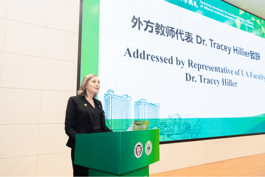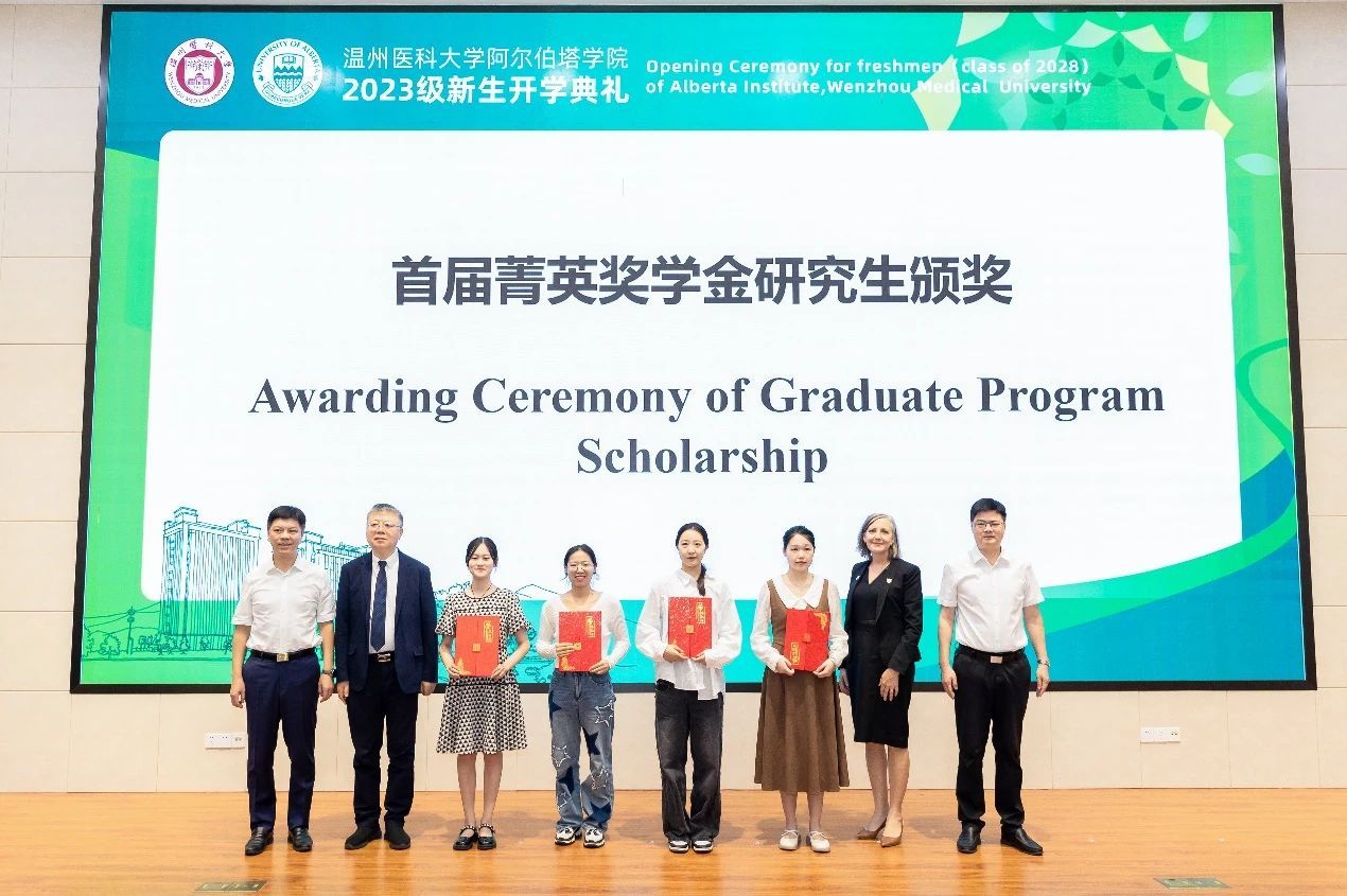 这场全程英文的开学典礼,邀请到各级领导与国内外专家,共同见证60位本科生与5位研究生的高光时刻。温州市人民政府副市长陈应许、瓯海区委书记曾瑞华、温州市人民政府副秘书长林丹艳应邀出席。阿尔伯塔大学副校长布兰达·合姆嘉姆(Brenda Hemmelgarn)院士线上观礼。拷贝漫画 校长李校堃院士,拷贝漫画 学术副校长宋伟宏院士,拷贝漫画 党委委员、宣传部部长李军红,拷贝漫画 外方执行长特雷西·希利尔(Tracey Hillier)及中加两校相关部门、学院的教师莅临现场。开学典礼由宋伟宏院士主持。