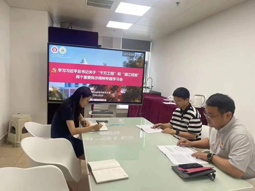 会议强调,支部党员需要通过理论和实践学习感悟习近平总书记身上攻坚克难的担当精神和求真务实的领袖风采。深入学习“千万工程”和“浦江经验”蕴含的战略思维,坚持以学促干、强化贯彻落实,把学院发展与助力乡村医疗振兴、志愿服务、健康教育等有机结合。党支部书记王小尚希望全体党员:一是“走出去、学经验”,要大兴调研,真正用好调查研究这个传家宝,学习不同高校中外合作办学的改革经验,扎实推进办学模式、育人方式、管理体制改革;二是“想办法、好好干”,要积极瞄准浙江省高等教育强省建设目标,教职工党员带头真抓实干、守正创新,以常学常新的态度,走近学生、走近课堂、走近宿舍,着力实现业务能力和专业本领的与时俱进;三是“不怕苦、努力干”,深入了解学院发展中存在的困难、问题,全院一盘棋、上下一条心,加强检视整改,敢于实干担当,积极服务学院发展大局和师生所思所想。