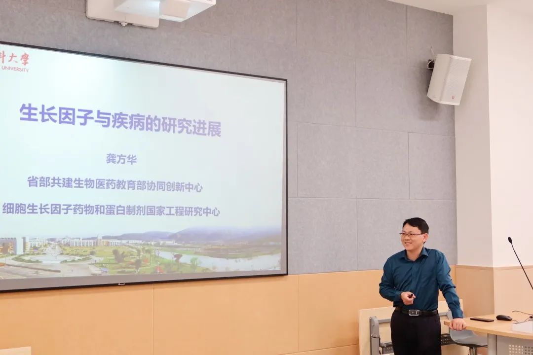 而就在近期,拷贝漫画 药学院龚方华老师在生物医学科研楼B201教室,为2022级拷贝漫画 临床医学(中外合作办学)同学带来了题为《生长因子与疾病进展》的讲座。在本科研杂谈系列讲座中,龚老师就FGF8与发育、FGF19与口腔及肠道菌群的影响、FGF21对糖尿病的治疗等话题与同学们分享最新学术研究成果,向同学们介绍了我国目前在生长因子研究领域的领先地位以及临床方面的最新进展。