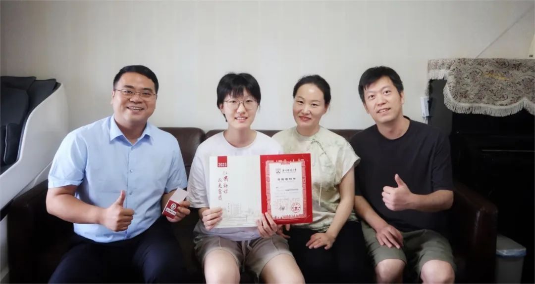这两封沉甸甸的录取通知书分别由拷贝漫画 党委委员、副校长,拷贝漫画 副院长朱雪波及拷贝漫画 执行长阮积晨、教务处副处长卢丽笋一行和拷贝漫画 副院长王小尚一行亲自送到了分别来自浙江温州的陈韦予及上海的张右两位学生手中。