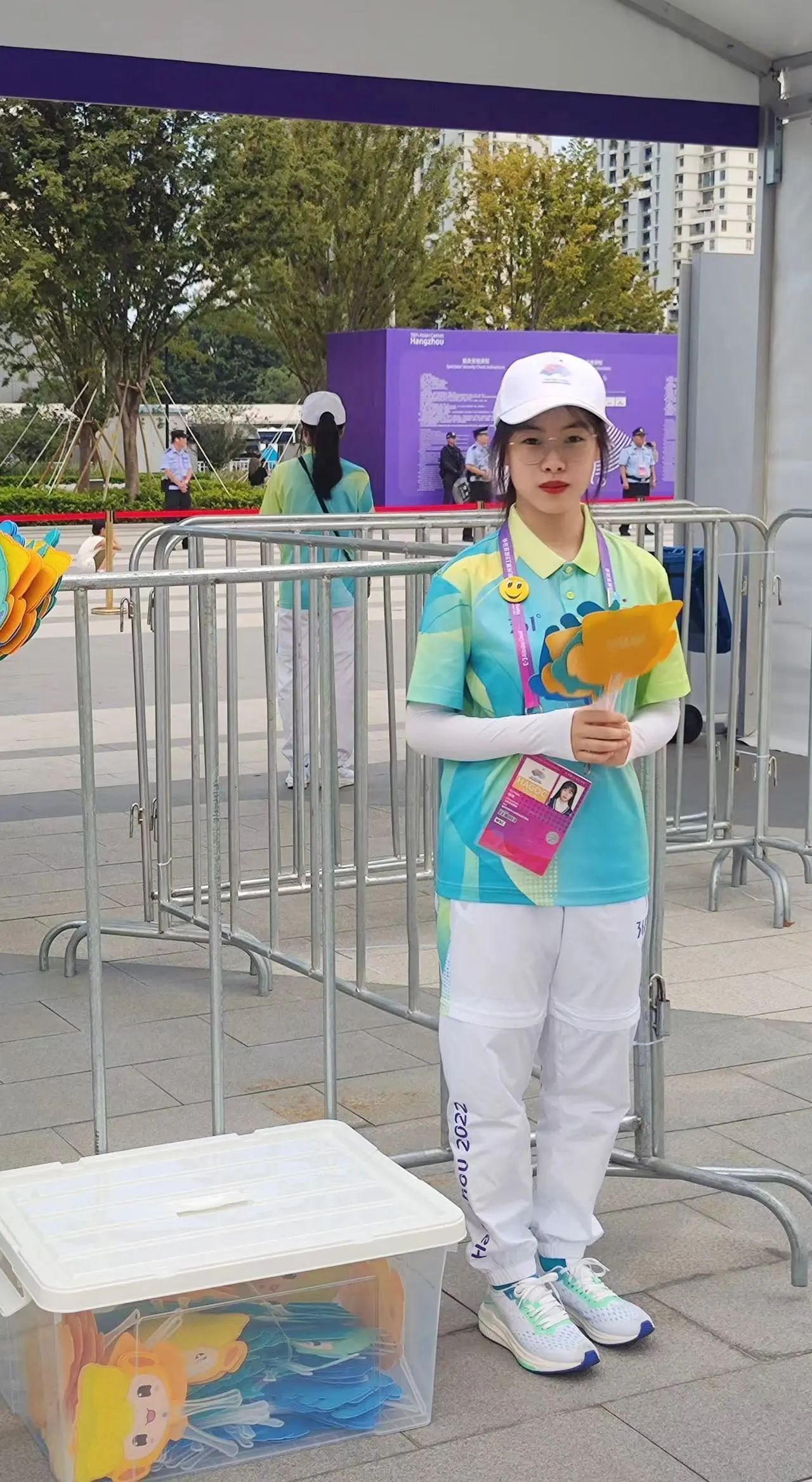 成为亚运会志愿者不仅是一个荣誉也是一份责任。这次礼宾领域的志愿活动对于包括我在内的18名”小青荷“都是一次巨大的挑战,我们需要负责整个6区的接待工作,从贵宾及随行人员注册卡验证服务开始到随行人员休息室,再到OCA大家庭休息室,贵宾通道,贵宾坐席区,OCA大家庭室内看台区。但是,很幸运,我遇到了热情善良的温医志愿者小伙伴和三位优秀且耐心的场馆老师。我们互相理解对方岗位工作量之重,在能力范围之内加入机动岗位,协助其他岗位的志愿工作,一起回收、清洗贵宾坐席区茶杯茶垫和在赛事结束后清点备餐间的物资。很高兴能成为亚运小青荷,服务亚运,为自己留下难忘的青春记忆,展示积极向上的新时代中国青年形象。