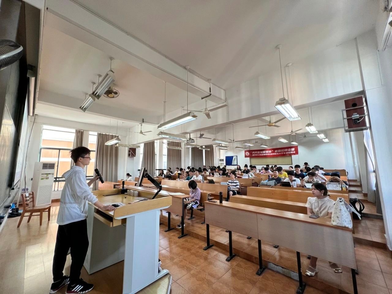 在为“新大二”的导学讲座中,院会学术部邀请到2021级优秀学子代表蒋晗鸣学长和叶昕学姐作为主讲人,两位同学在过去两年中,学业成绩、学生工作、社会实践等方面都有十分出色的表现。