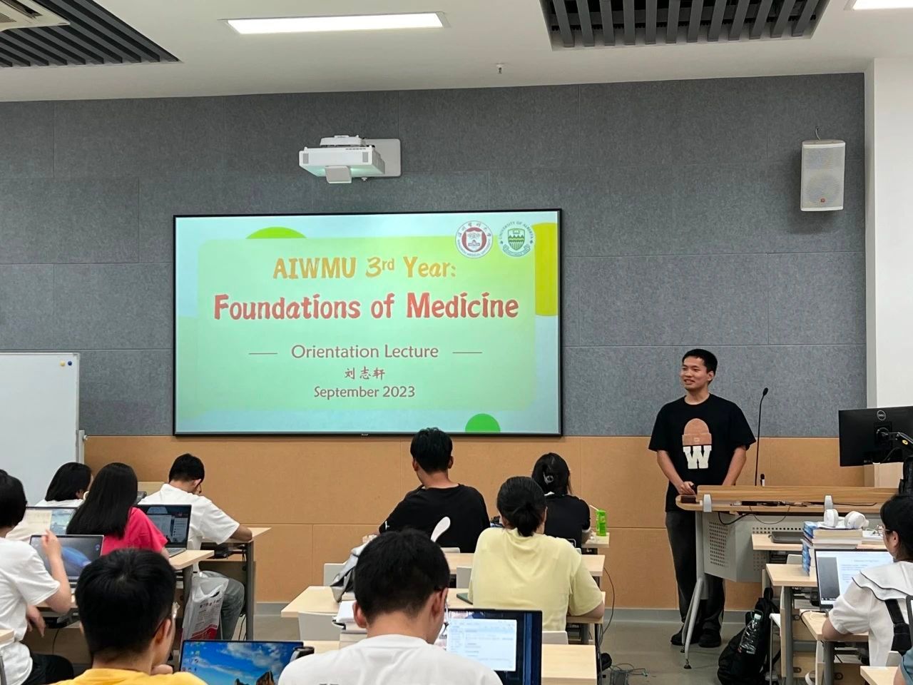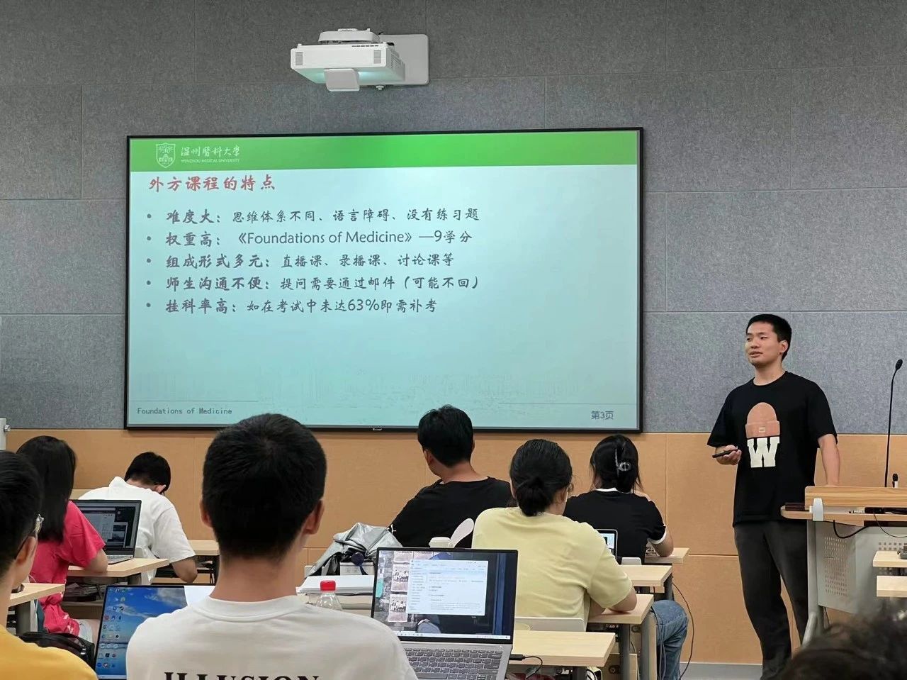 大四的两位学长主要就大三开始的加方全英文授课的学习安排进行介绍,带领大三同学对课程性质有一个具体的、清晰的认识;就怎样高效地自主学习分享了自己的方法。