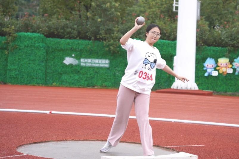 手握铅球,心有成竹。虽有几分沉重,几分辛苦,正现人之本色,豪情万丈。