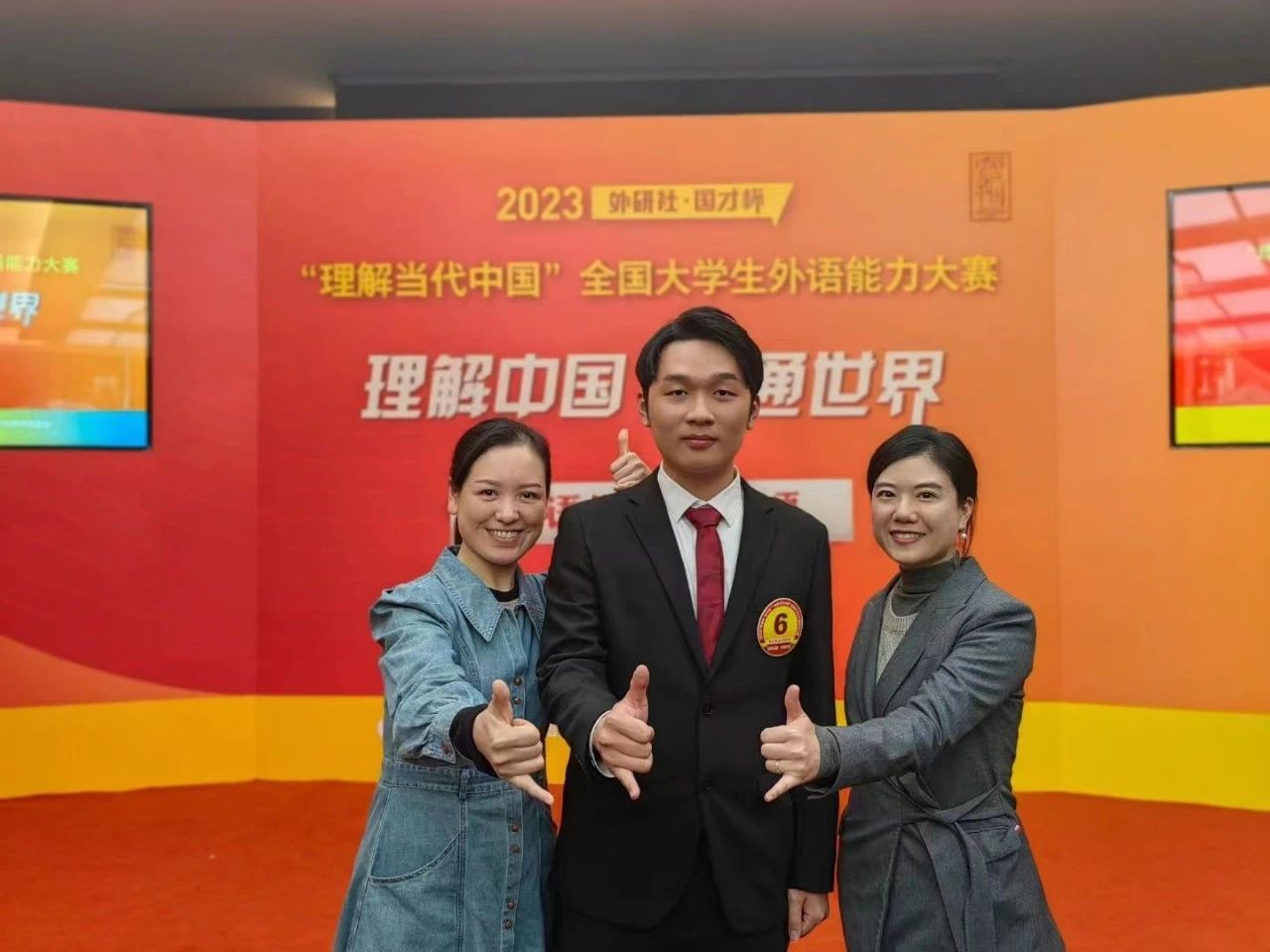12月4日,2023“外研社·国才杯”“理解当代中国”全国大学生外语能力大赛(英语组)国赛演讲赛项第二阶段在北京举办,150名选手立足中国国情、放眼全球发展,理解中国之路、阐明中国之理、传递中国之声。经过激烈比拼,10位选手成功晋级第三阶段比赛。我院2021级学生王浩天就是其中之一!