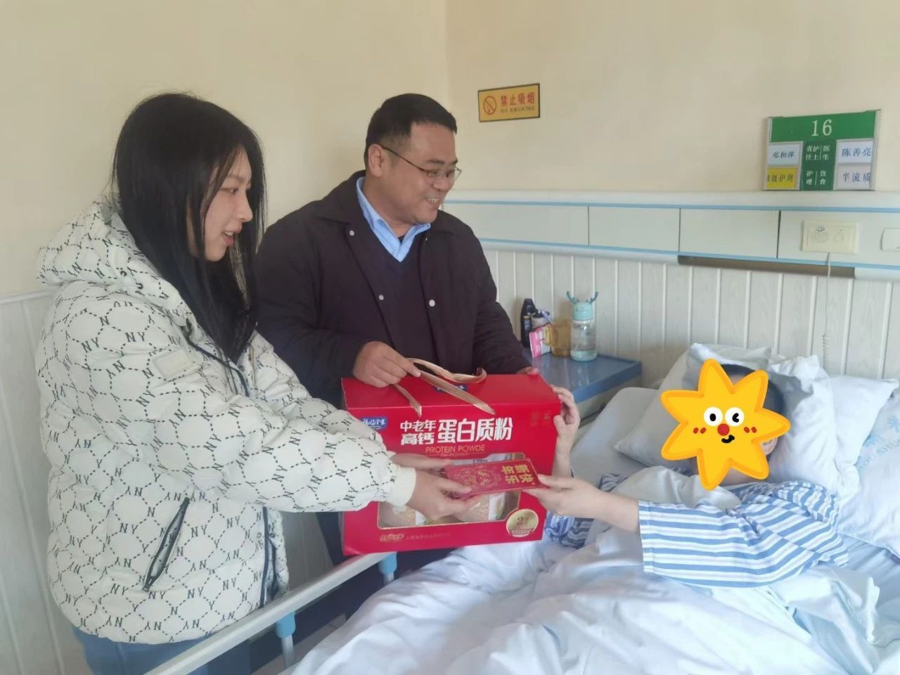 当天下午,王小尚副书记还与白求恩志愿者服务社学生负责人伍奕昕同学一同走进慈善病房,为福建50岁的程女士、43岁的卓先生等两名难愈合创面伤患者送上慰问品、慰问金和爱心营养餐。
