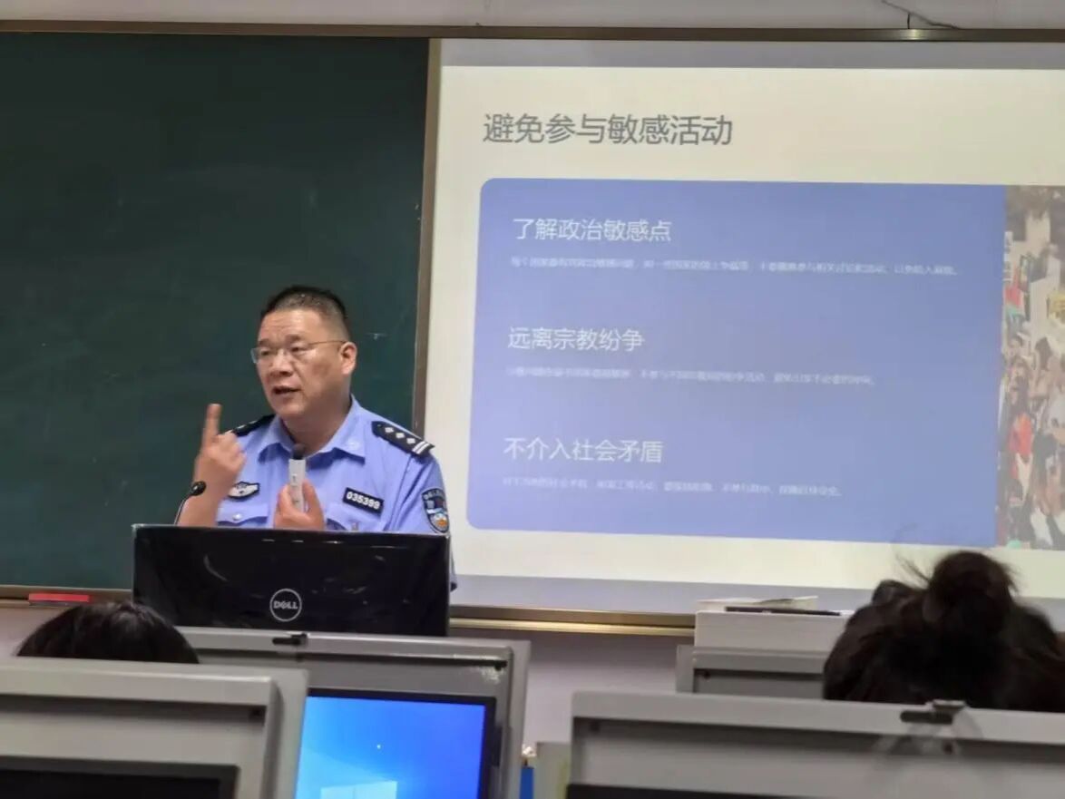 茶山街道派出所朱勇副所长以“大学生暑期外国游学安全”为主题,结合真实案例,重点强调了加拿大当地法律法规、社会治安特点、财产安全与毒品安全、宗教安全及应急求助渠道。他提醒学生:“务必遵守当地法律,避免因文化差异引发误解;遇紧急情况第一时间联系中国驻加使领馆或当地警方,并保存好报警记录。”