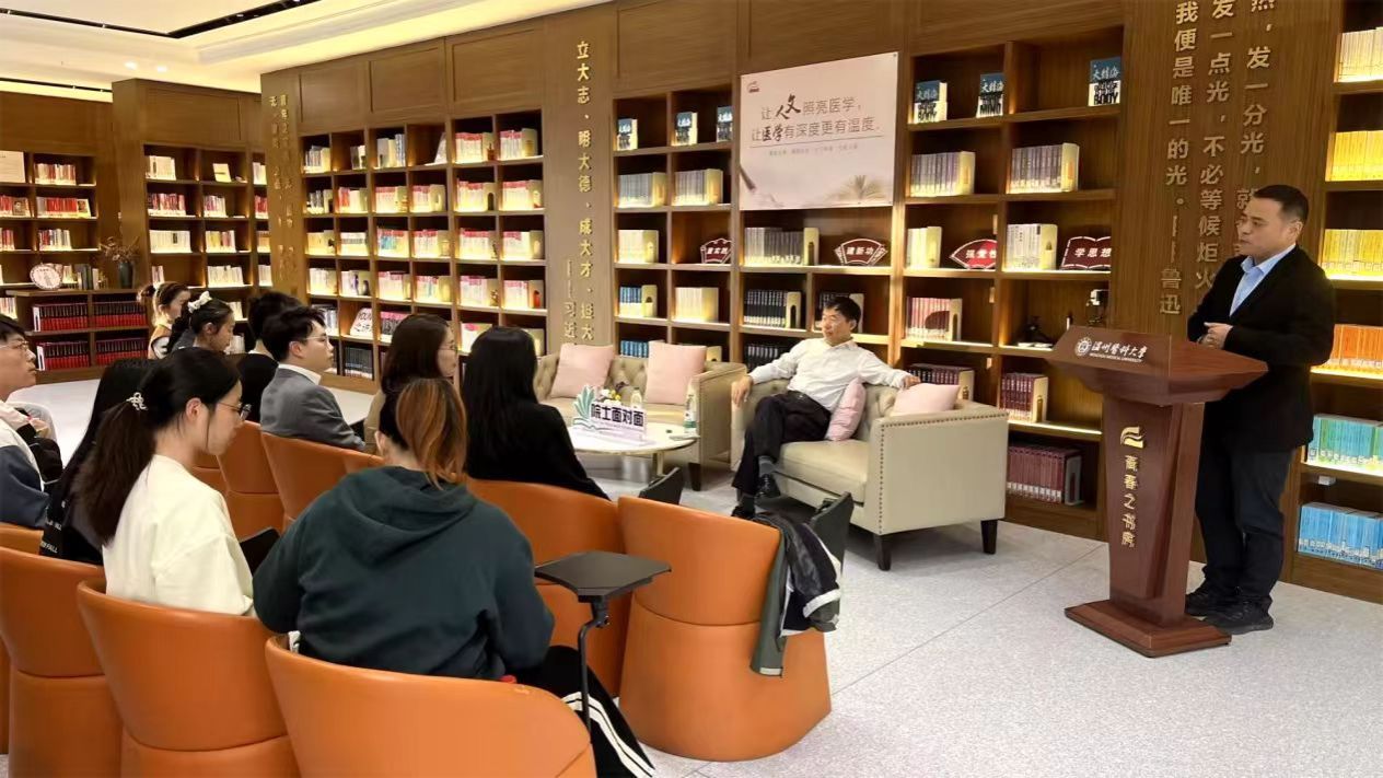 在职业发展与海外深造话题分享中,李院士与2023级罗玥、蒋沛含、陈佳如及2024级张宸选等同学展开针对性访谈,互动交流高屋建瓴、寄语深远。针对罗玥、蒋沛含等同学关心的"出国发展途径、加拿大行医资格获取”等具体问题,李院士跳出流程层面,引申至治学之道与为医初心;面对陈佳如、张宸选关于海外深造规划的疑问,他鼓励大家拓宽国际视野,保持持续学习热情与科研探索精神,在全球医学舞台上积极发出中国声音。
