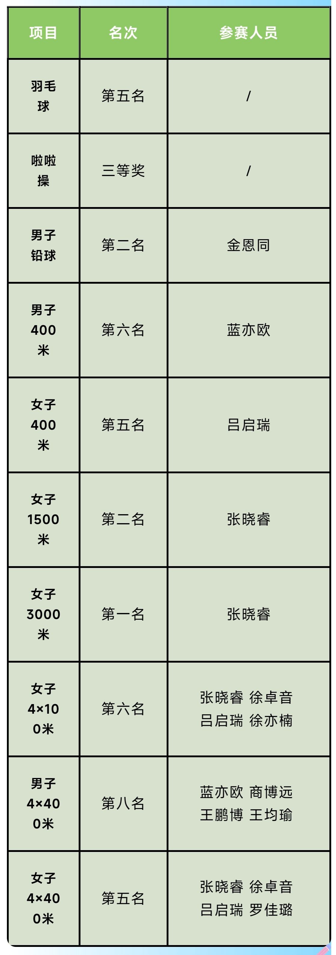 斩获学生组女子4×100米第六名