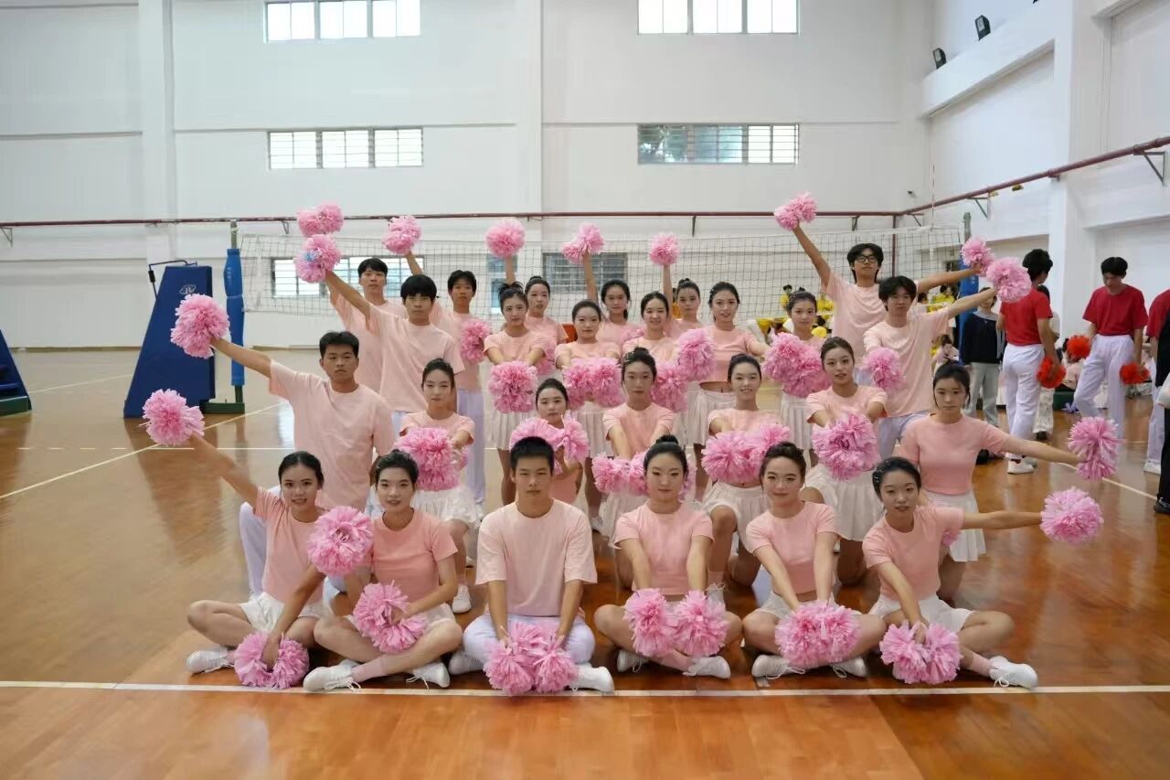 随着激昂的鼓点响起,阿院啦啦操方阵如潮水般涌向操场中央。他们身着粉红色运动服,动作如行云流水般展开。