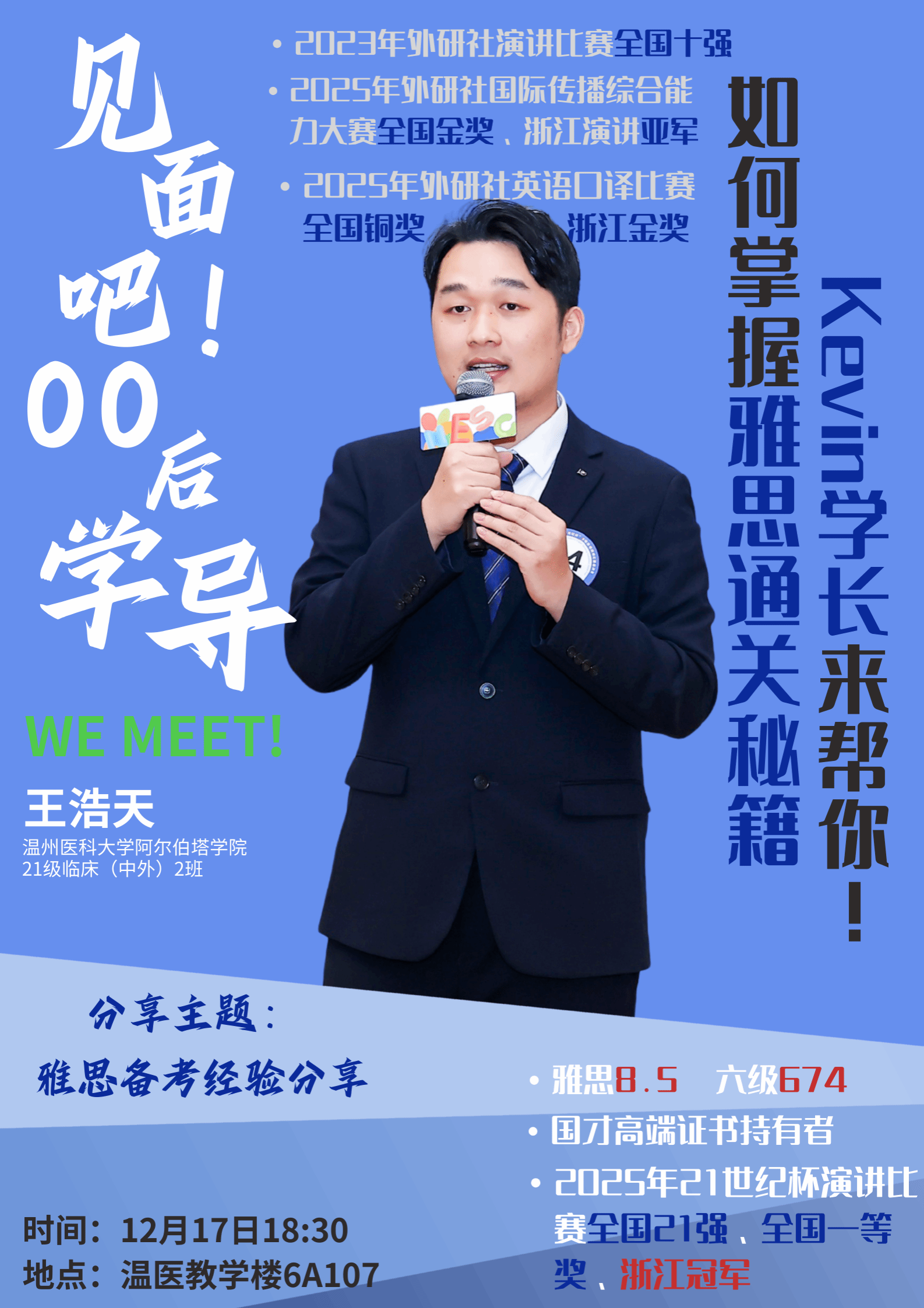 见面吧,00后学导|如何掌握雅思通关秘籍,阿院优秀学子王浩天学长来帮你!