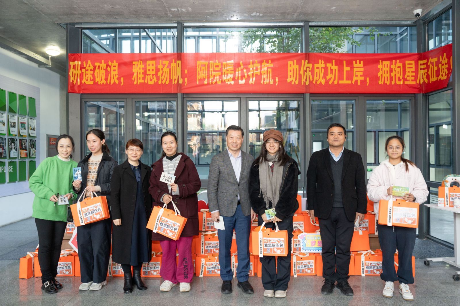 学院学工办为全体新生精心筹备了雅思解压包,将关怀与鼓励尽数打包。发放现场,老师们逐一为同学们送上解压包,还亲切地与每位同学合影留念。镜头下,一张张洋溢着笑容的脸庞,驱散了备考的疲惫,让同学们深切感受到学院的坚实支撑,更坚定了勇往直前的信念