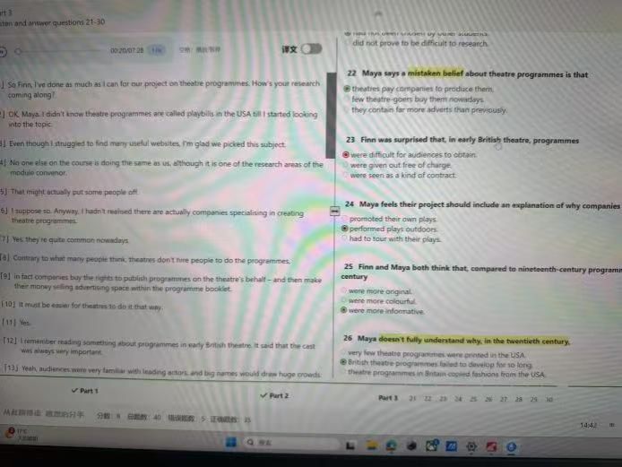 对于选择题,重点是理解对话的整体意思,而非逐词听清。尤其要注意听力内容与题目中对同一事物不同的表达方式。例如,题目问“What does the speaker say about the new library?”,选项中出现“It has longer opening hours.”。而录音里可能并不会直接说“longer hours”,而是说“the library now closes at 10 pm instead of 8 pm.”,识别出这种同义转述是解题的关键。